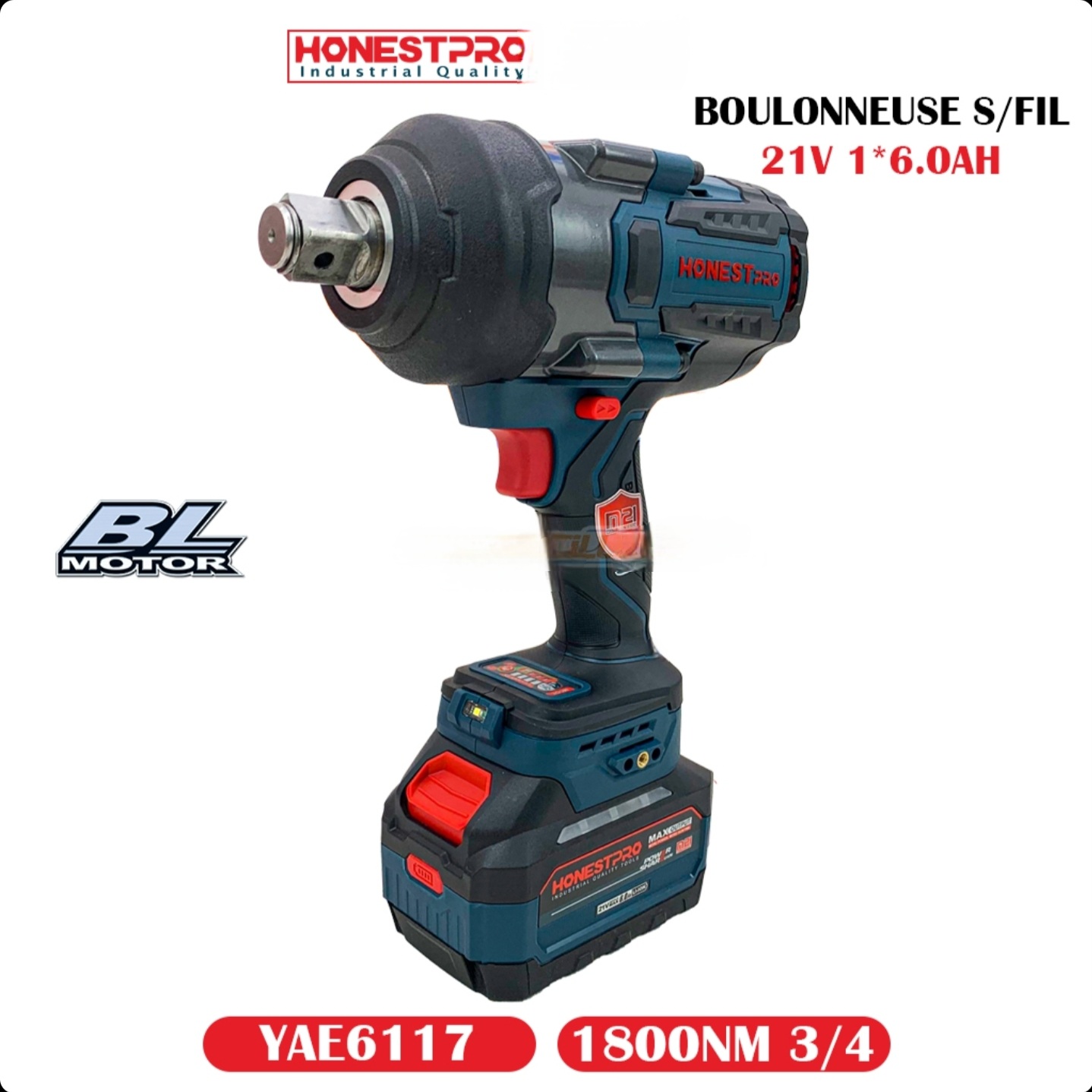 Boulonneuse – Clé A Choc A Batterie brushless 21V 6.0Ah HONESTPRO YAE6117اقوى مفك براغي للشاحنات