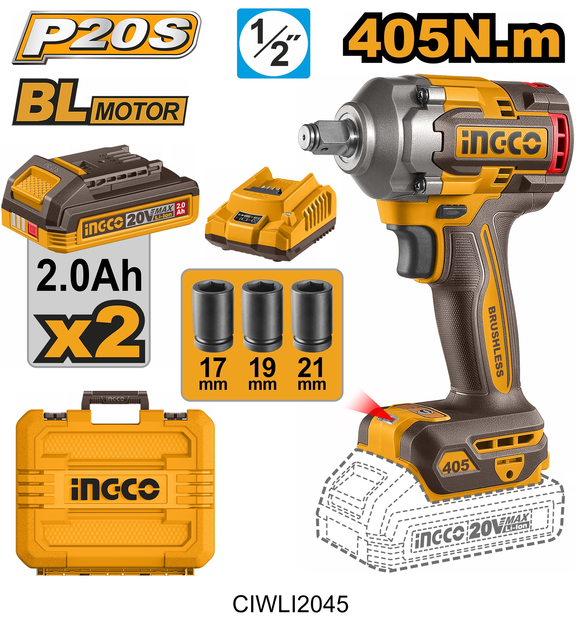 | Clé à chocs sans filINGCO CIWLI2045 |