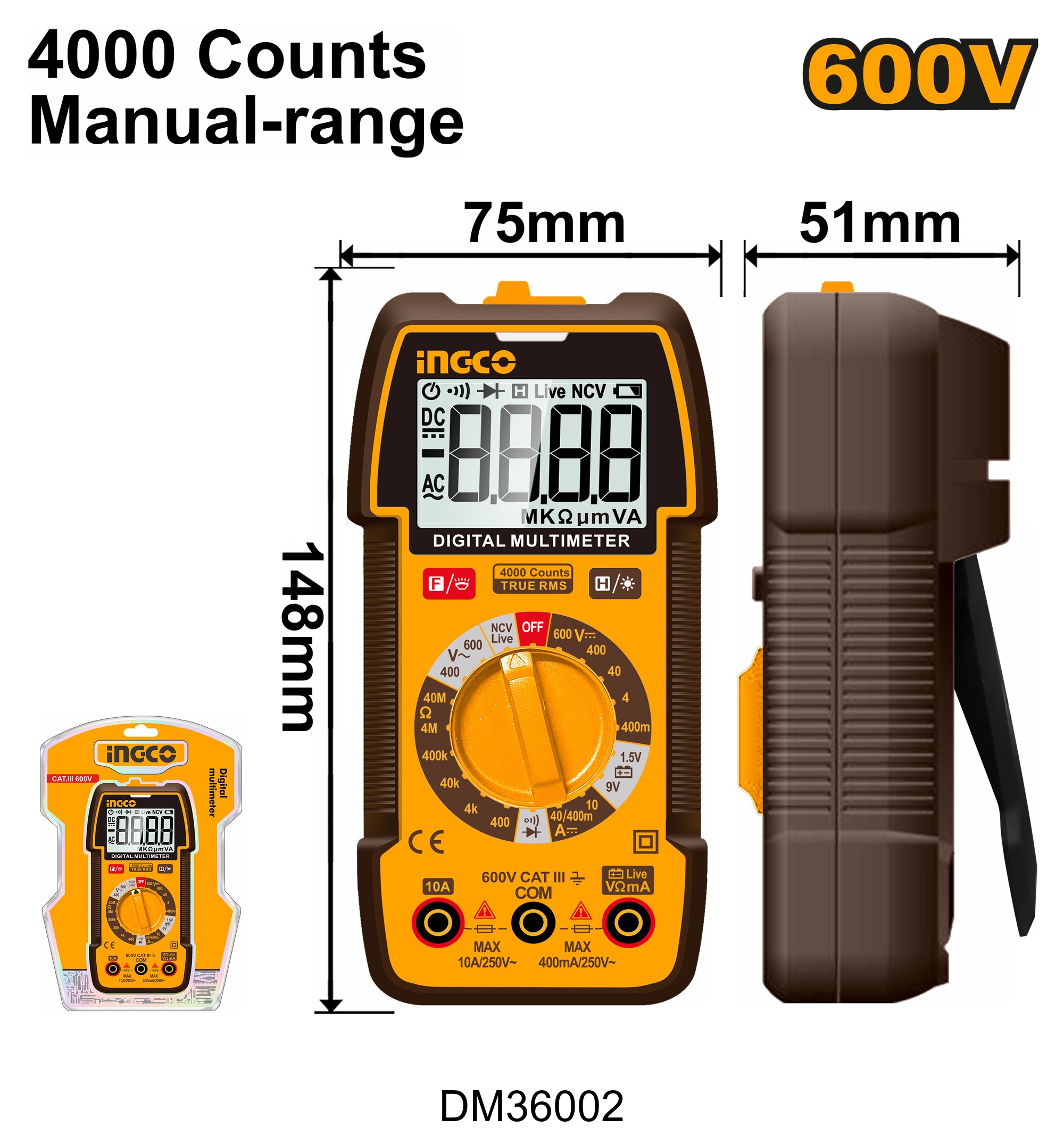 Display: TRUR RMS 4000 counts (CAT.III 600V)