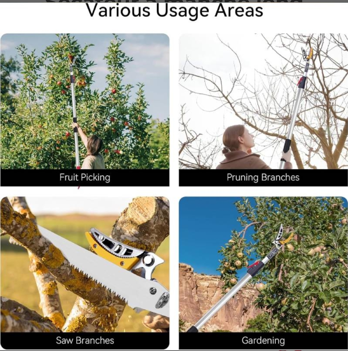 Sécateur a manche long extensible avec scie 3m