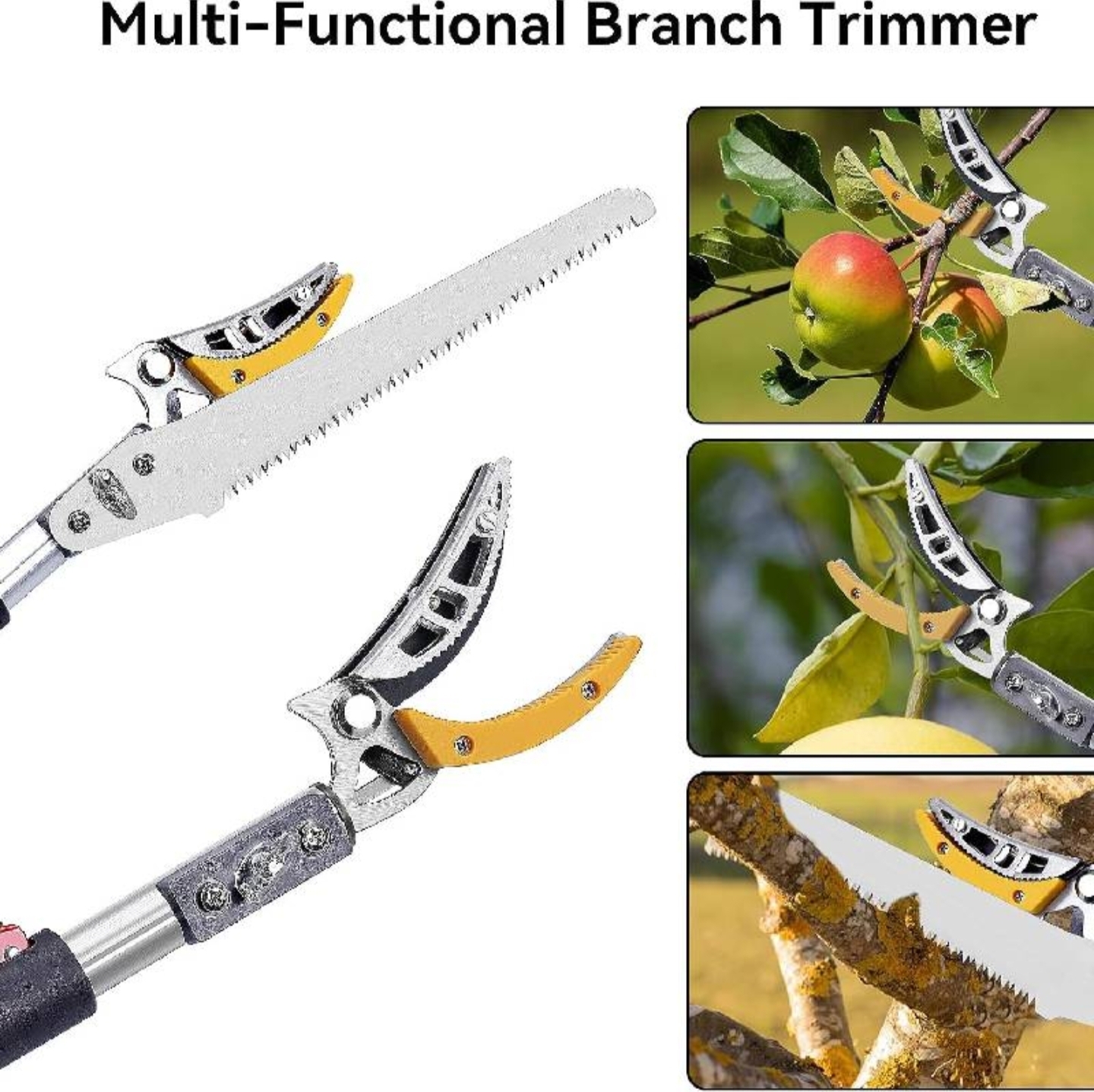 Coupe-branches extensible 3m avec scie pour une taille facile, précise et sans effort des arbres en hauteur.